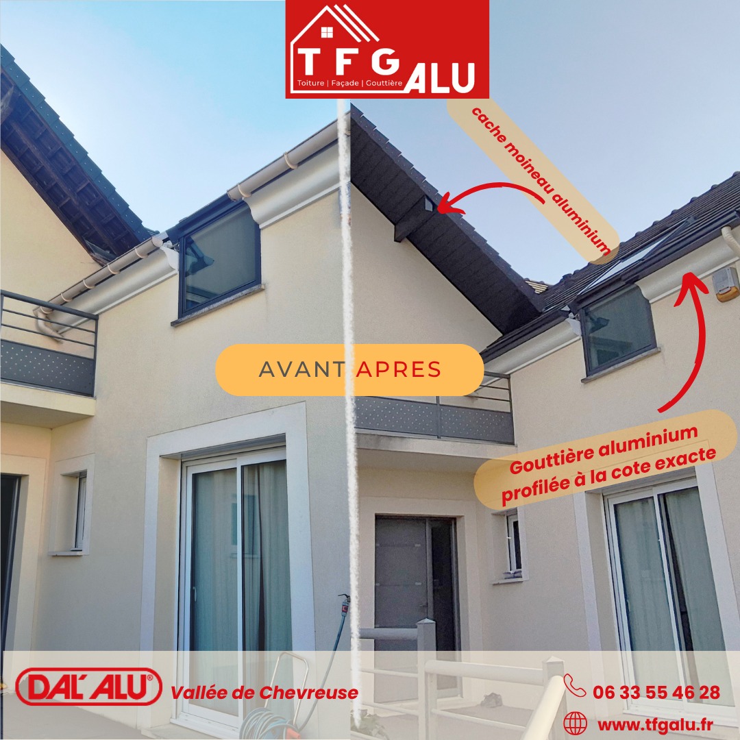 Bienvenue chez TFG ALU, votre partenaire de confiance pour tous vos besoins en gouttières en aluminium en continu, sous-face, bande de rive, bandeaux, couvertines, bardage et garde-corps à Chevreuse et les Yvelines.